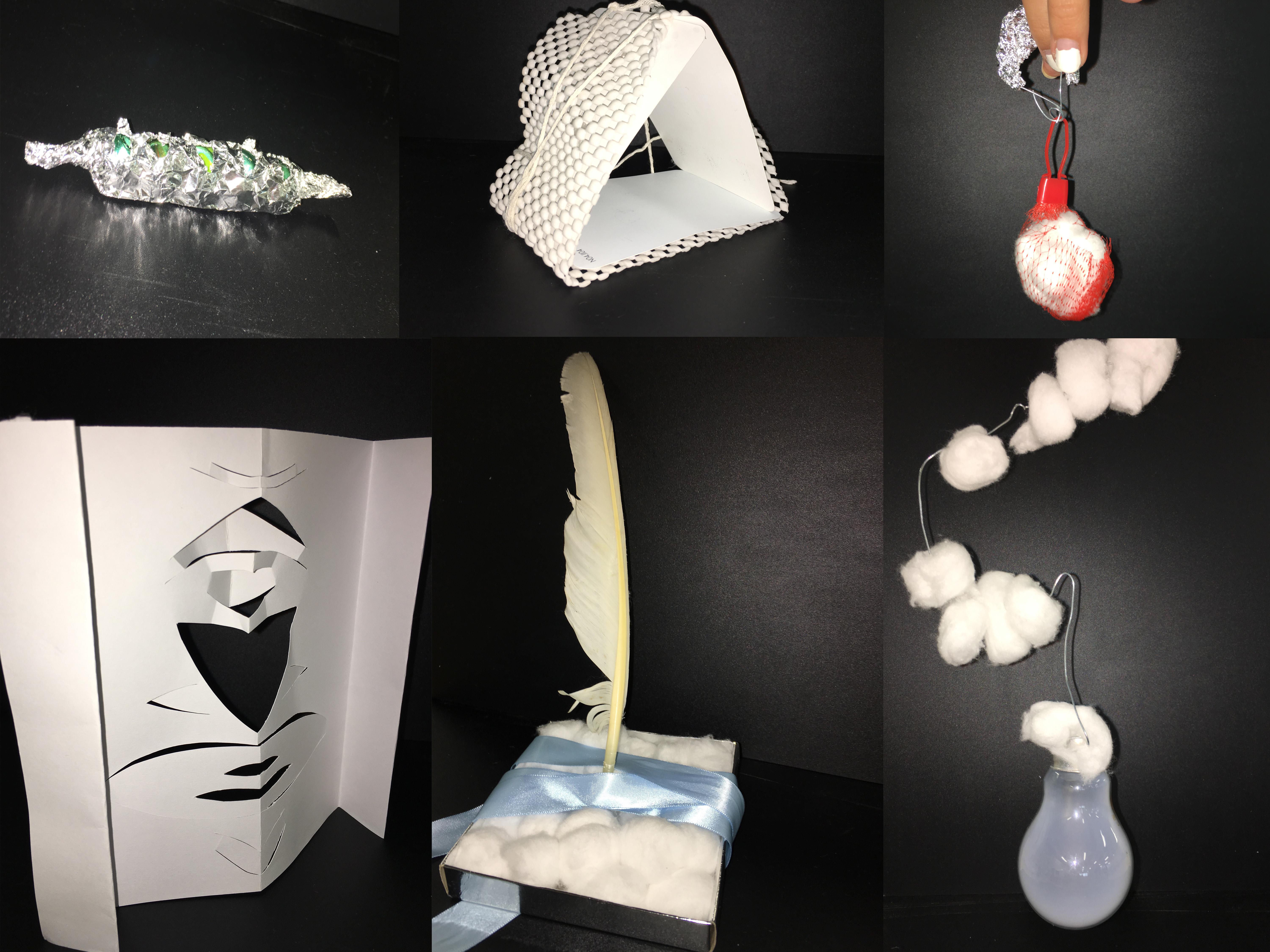 When the light is shining on this model, you can see the colorful marbles shine and the aluminium foil reflects the light onto the surface it sits on. This model represents the different dreams we may have in one sitting like little pockets within our minds deep in our subconsionc.