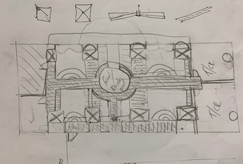 In our groups we also started to discuss how we would collectively help one another present as we will each need a hand to shuffle around the models and make our own designs visible. Our group model is made up of three main pieces; the base (with contours, and the pocket forest,) the base of the main building (which we are not altering) and another piece which sits on the roof to complete the model in the most aesthetically matching way as possible. under the two building pieces sits our basement / bathing design.