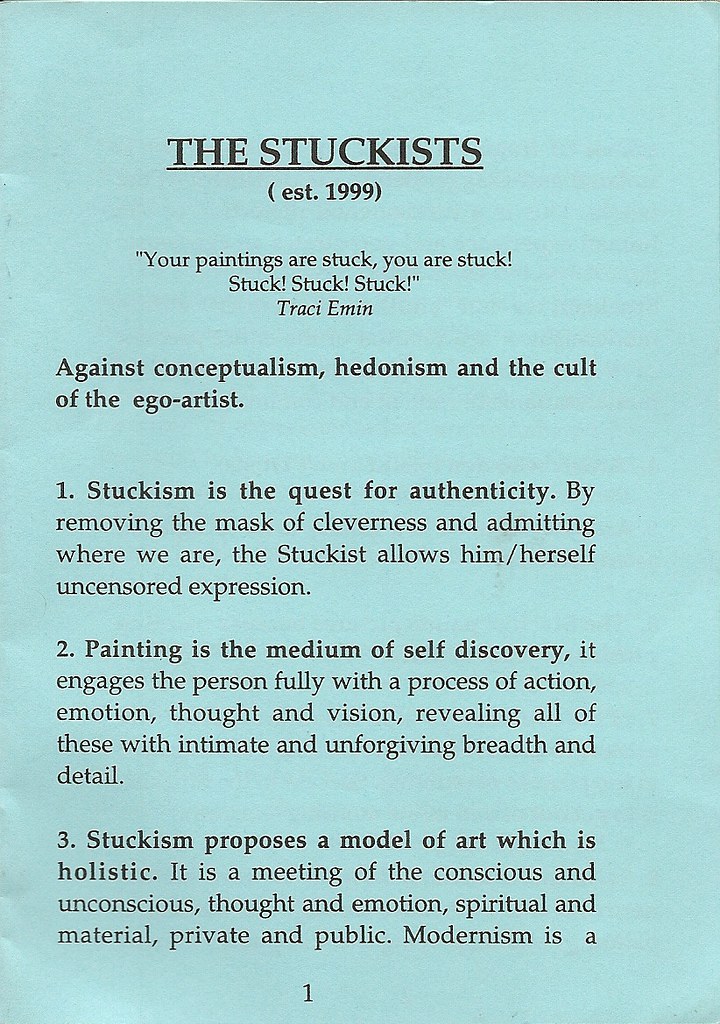 - expresses thoughts on how being a “stuckist” is beneficial as an artist to grow and create uncensored art- it creates authenticity