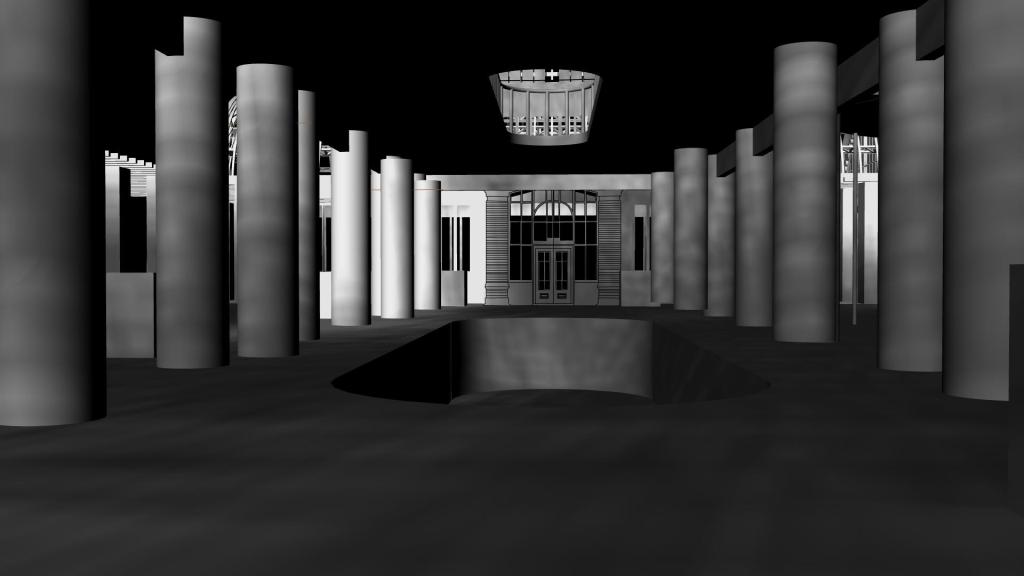 Interior Perspective: Under Tea House looking at Sunken Pool
