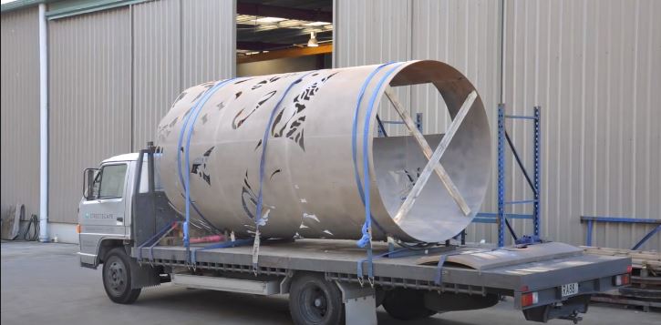 - Laser cut/router pattern into 8 sheets (that will create 7m diameter cylinder) of corten steel